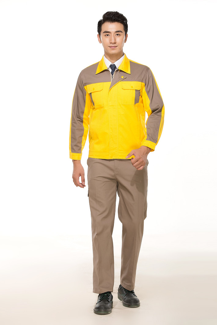 壽縣工作服定做廠家定制工服款式全棉黃色拼灰色套裝GZ-8018